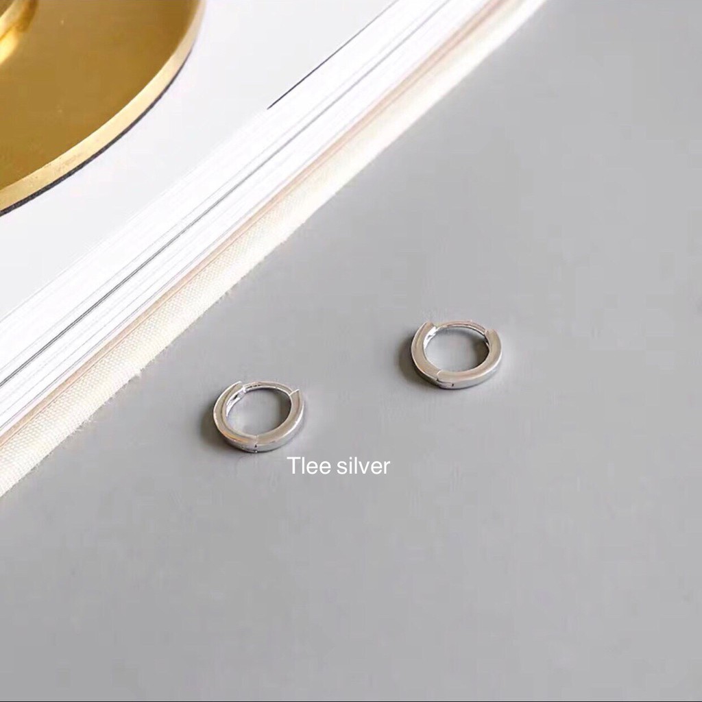 Giới thiệu Khuyên bạc tròn bản dày cá tính Tlee bạc nguyên chất Sản phẩm bán theo chiếc, theo đôi.