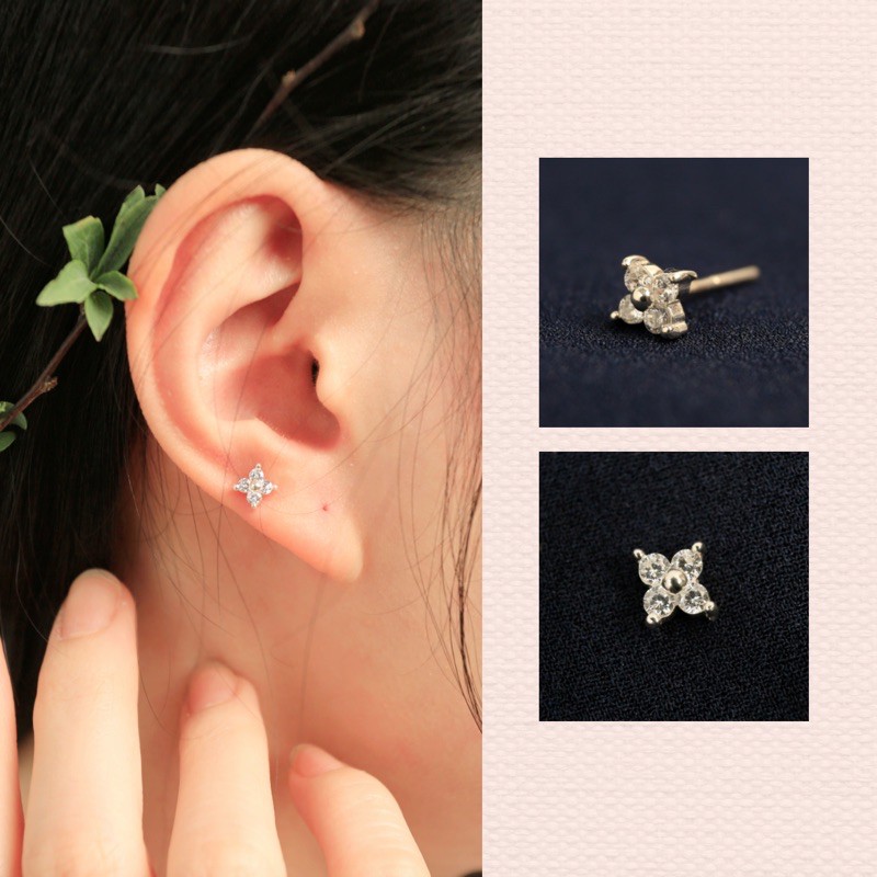 Phụ Kiện Thời Trang > Bông tai || Khuyên hoa 4 đá BẠC S925 LANN E252