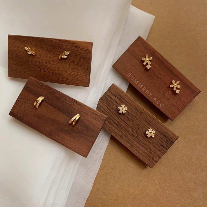 Giới thiệu Khuyên tai bạc 925 SUMMERY nụ hình lá đính đá bông tai S925 mạ vàng