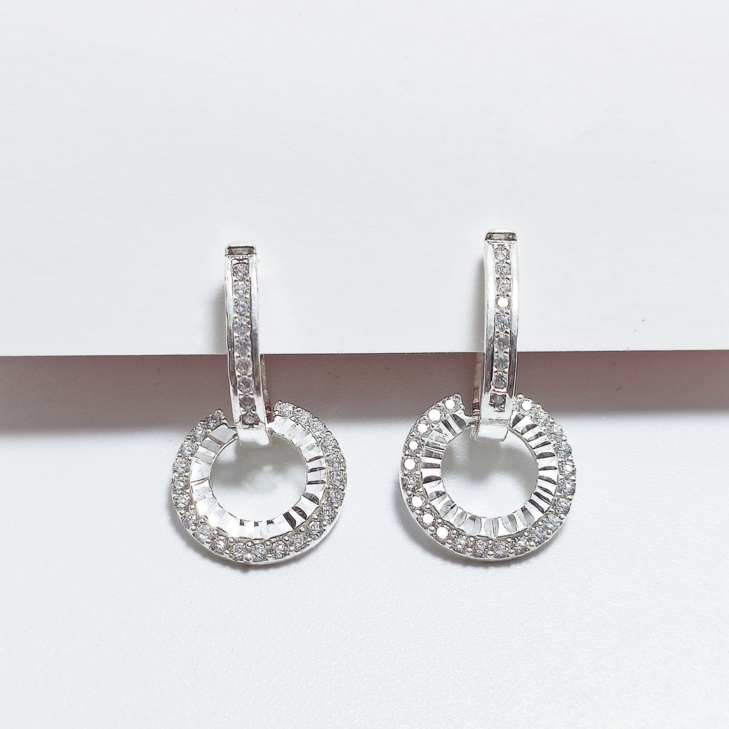 Khuyên tai bạc Khuyên cài Circle phay bóng nạm đá trắng nhỏ