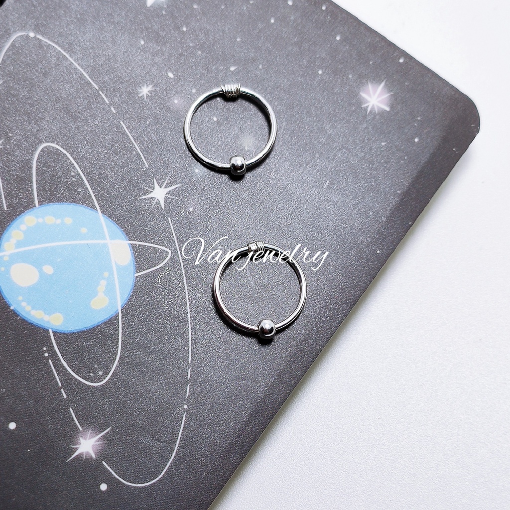Giới thiệu Khuyên tai bạc Khuyên vòng tròn bi bạc và bạc xi vàng đường kính 1cm
