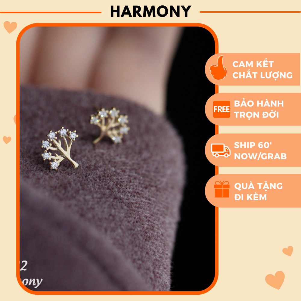 Giới thiệu Khuyên tai, bông tai bạc nữ mạ vàng The Tree đính đá hình cây mẫu mới cá tính trẻ trung K82| TRANG SỨC BẠC HARMONY