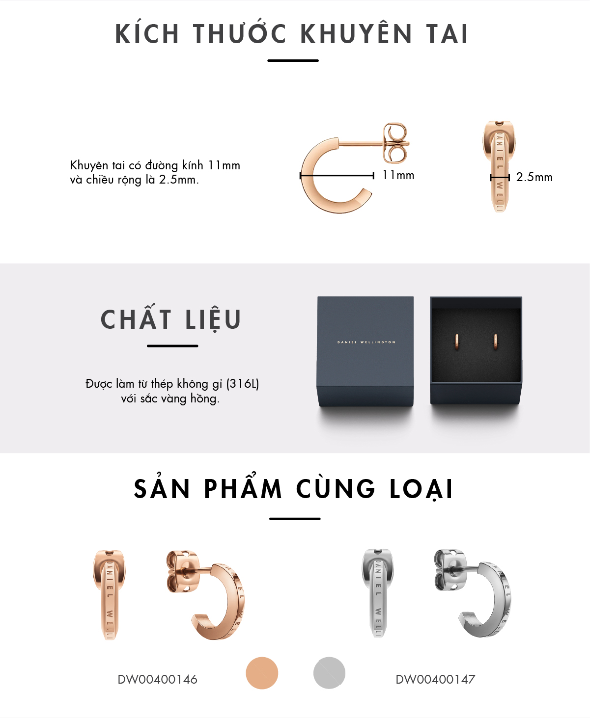 Khuyên tai Daniel Wellington màu vàng hồng Elan DW00400146