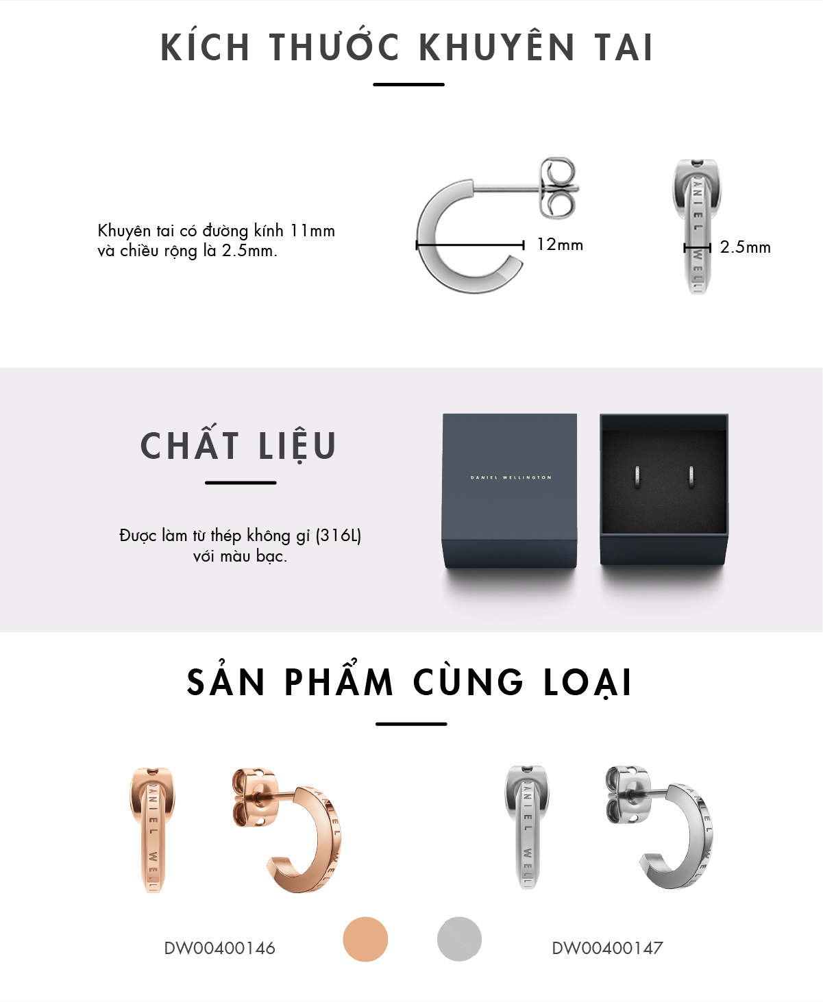 Khuyên tai Daniel Wellington màu bạc - Elan DW00400147