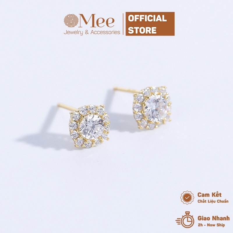 Giới thiệu Khuyên tai nữ vàng bạc 925 tròn đính đá Mee unisex không bấm nụ đẹp dễ thương đơn giản cao cấp - E6635