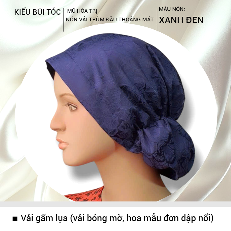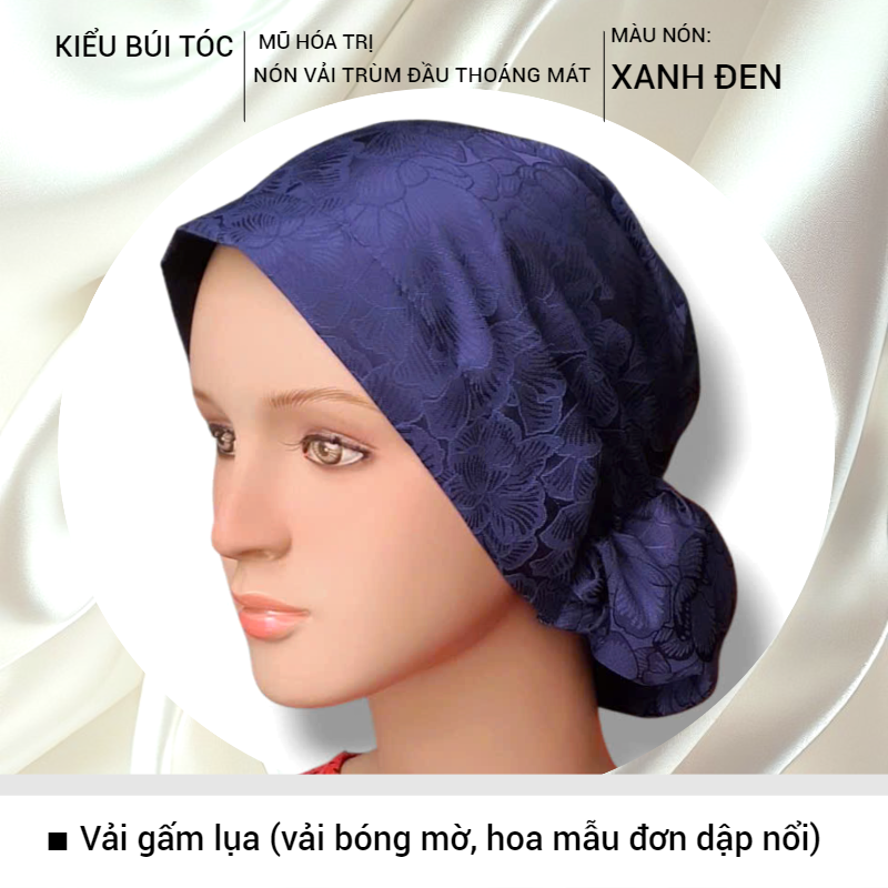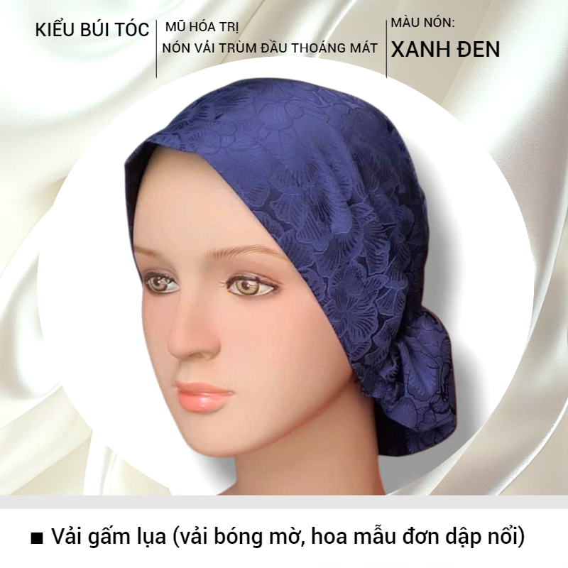 (.) TÊN SẢN PHẨM: Nón hóa tri., mũ hóa tri., vải hút mồ hôi, thoáng mát, mềm mịn [KIỂU BÚI TÓC- VẢI GẤM LỤA]