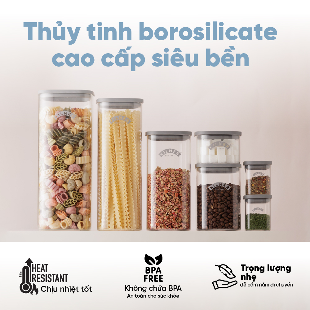 THIẾT KẾ ĐA NĂNG & TIỆN DỤNG | Hũ vuông có thể xếp chồng lên nhau này được thiết kế để tối ưu hóa không gian bếp, đồng thời dễ dàng rót và lấy. Lý tưởng để sử dụng trong tủ bếp, tủ chén hoặc mặt bàn bếp, kích thước nhỏ gọn của hũ phù hợp với mọi không gian.