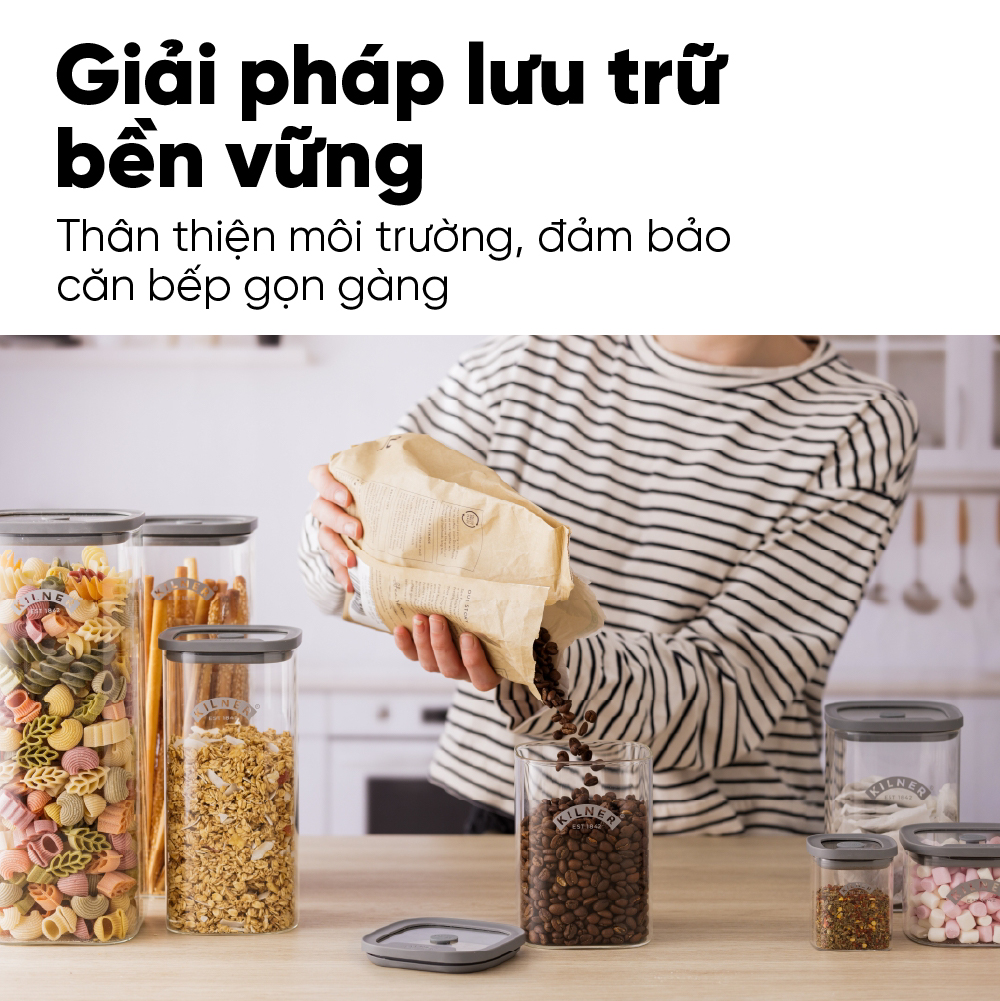 GIẢI PHÁP LƯU TRỮ THỰC PHẨM CAO CẤP | Hũ thủy tinh hoàn hảo để lưu trữ các thực phẩm thiết yếu trong bếp như túi trà, hạt cà phê, đường và đồ ăn nhẹ khô. Máy hút chân không kín khí giúp giữ độ tươi ngon, đảm bảo thực phẩm của bạn luôn thơm ngon và đậm đà trong thời gian dài hơn.