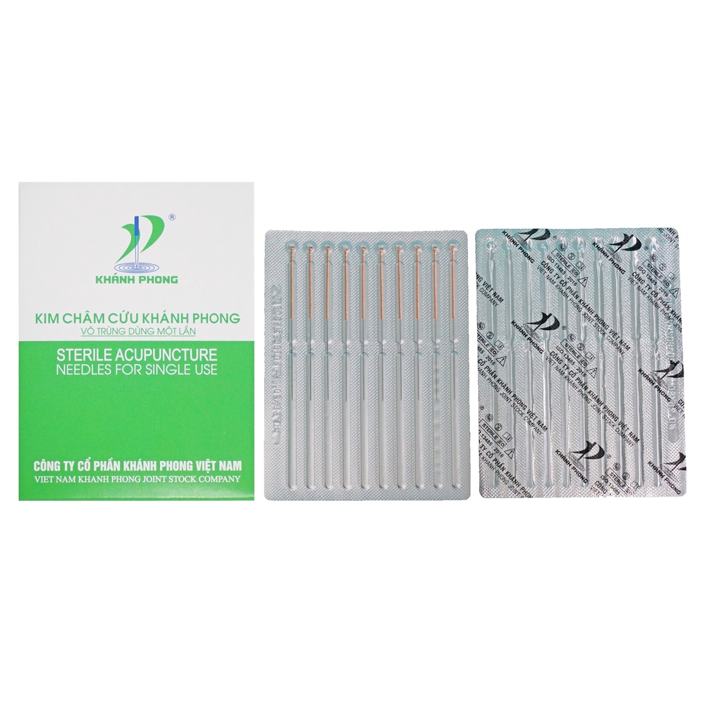 Giới thiệu Kim châm cứu Khánh Phong vô trùng dùng 1 lần cán đồng có khuyên - Chính hãng Khánh Phong - Hộp vỉ 10 gồm 100 kim