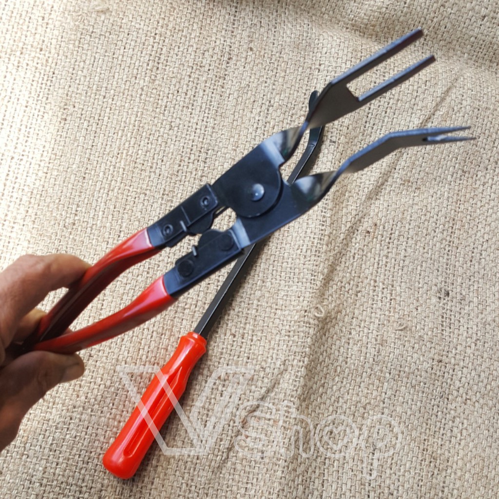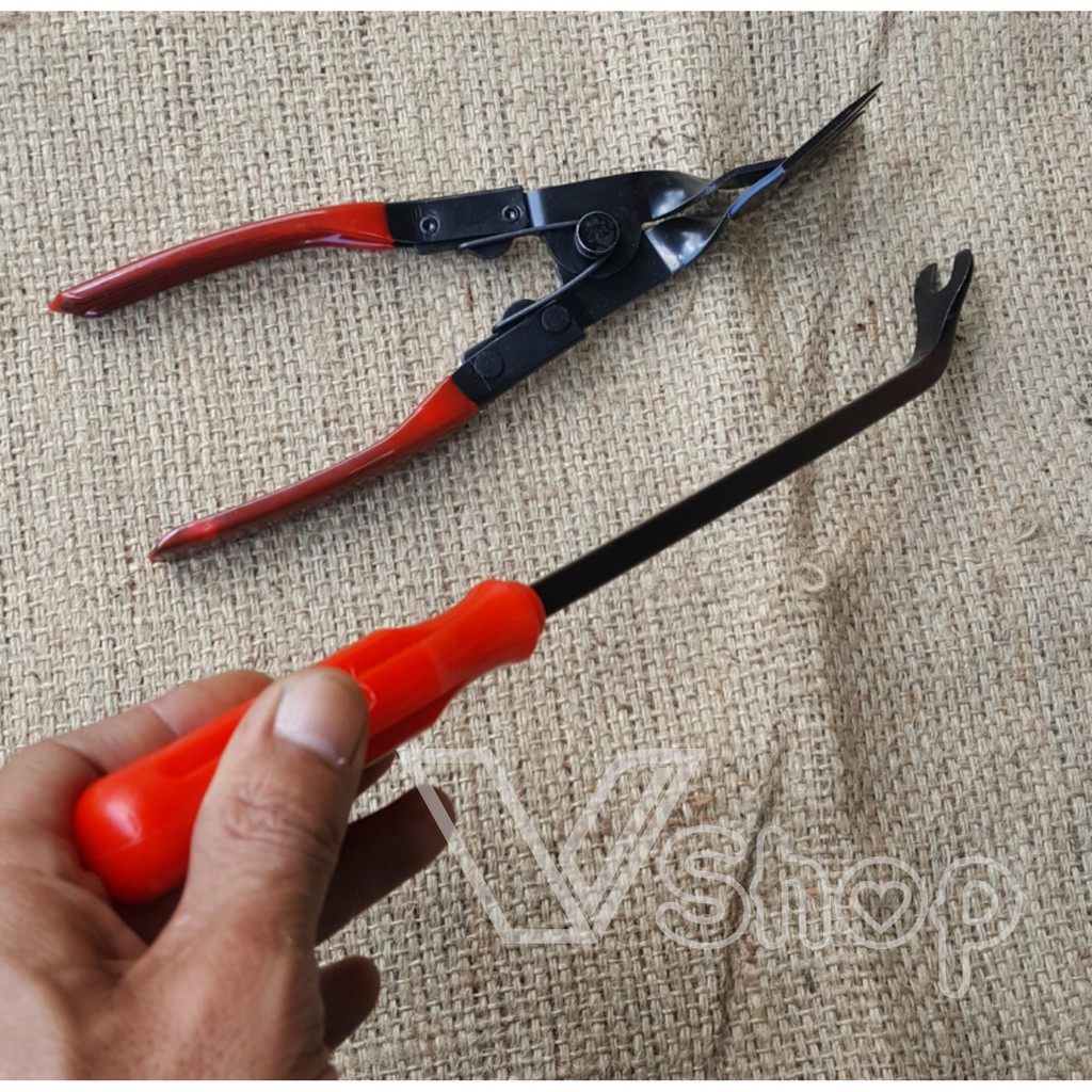 các chi tiết nhựa, đồ nội thất ô tô, thường được gắn kết với nhau bởi chân gài, chấu gài. Với những xe đã qua 1 hoặc vài lần tháo, ráp đồ nội thất thì những chốt, chấu gài này tương đối lỏng, dễ mở. nhưng với những xe, tháo mở đồ nhựa lần đầu thì khá là vất vả. chấu gài, chốt gài còn mới, bám vào nhau rất chặt. để tháo mở được thuận lợi và an toàn, cần có công cụ hỗ trợ chuyên dụng. Bộ kìm và tua vít chuyên dụng, tháo mở đồ nhựa, đồ trang trí, nội thất ô tô, xe hơi, được thiết kế để dành riêng cho công việc này. Kìm được thiết kế dạng mỏ dẹp, lách vào những chân của chốt gài. Khi bóp kìm, miệng kìm sẽ há rộng ra, nhổ chốt gài. Với những chốt bám quá cứng thì tua vít được thiết kế để nạy, sử dụng tương tự như với búa nhổ đinh, với lực đòn bẩy, mạnh, nhổ chốt ra dễ dàng. Ngoài bộ kềm và tua vít, shop cũng có cung cấp bộ dụng cụ tháo nội thất ô tô, được làm bằng chất liệu nhựa. anh em nào chưa có thì trang bị thêm. Với những chi tiết không quá khó để tháo, mở thì nên dùng những công cụ tháo mở bằng nhựa, tránh để lại dấu vết, giữ cho đồ xe được mới và đẹp.