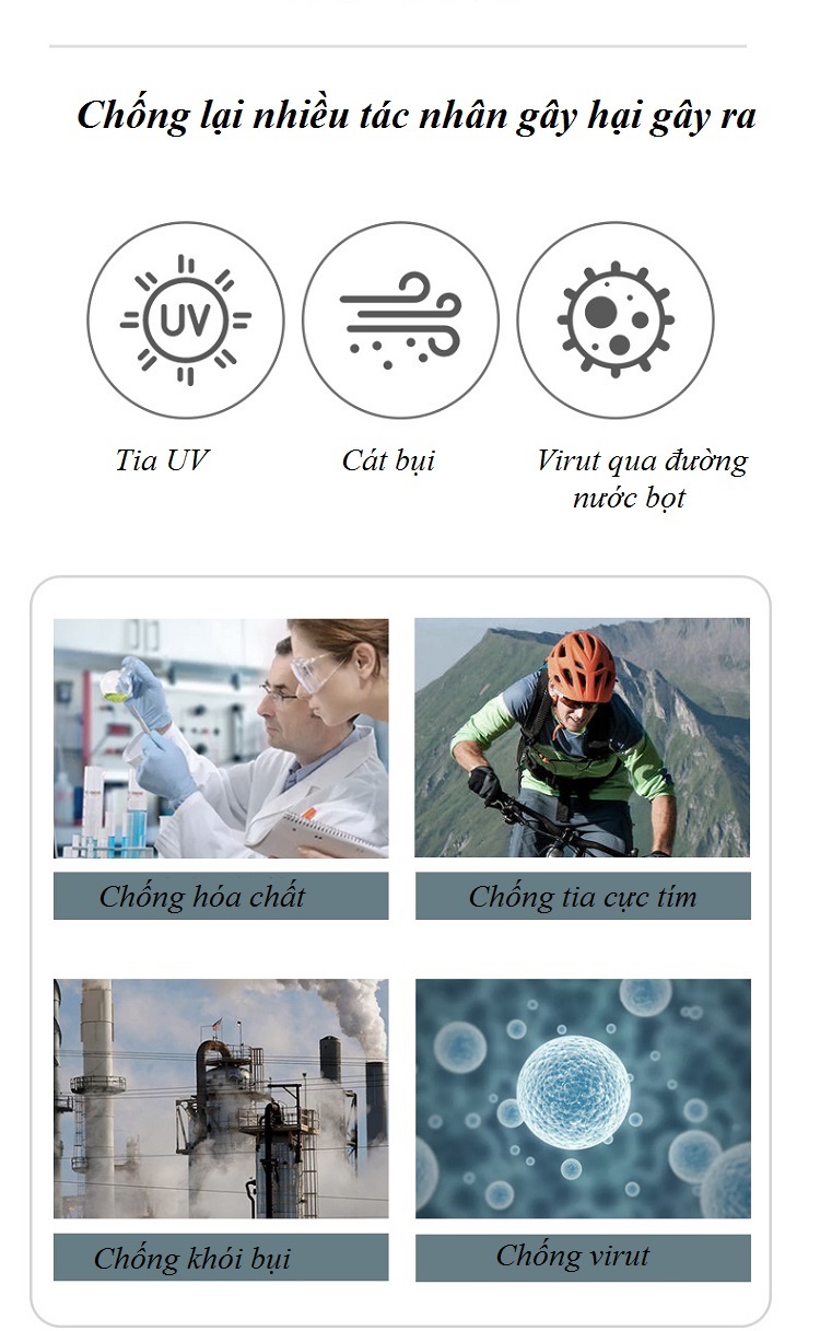 Chống bụi, chống tia UV lên đến 99.9%, chống văng bắn