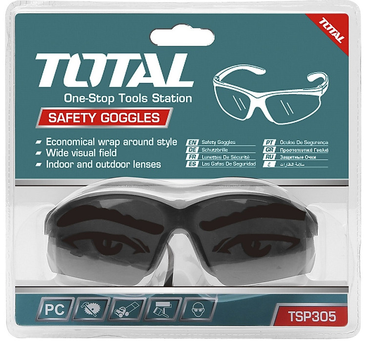 Kính bảo hộ lao động chống bụi và chống tia UV TOTAL TSP305 là sản phẩm chuyên dụng để bảo vệ mắt khi mài hoặc chà nhám gỗ, kim loại, đá, làm vườn