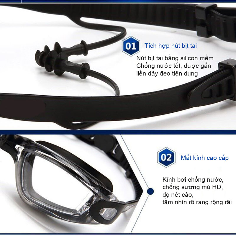Màu sắc : đen Kính bơi gồm có mẫu 1, mẫu 2(quý khách lưu ý bấm chọn từng phân loại hàng)