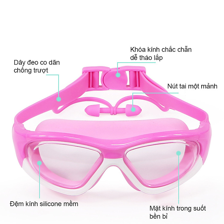 Nút bịt tai cũng làm từ silicon mềm gắn với dây kính nên khi sử dụng cho tai vô cùng an toàn mà không đau hay tổn thương tai vốn là vùng nhạy cảm và quan trọng trên cơ thể .