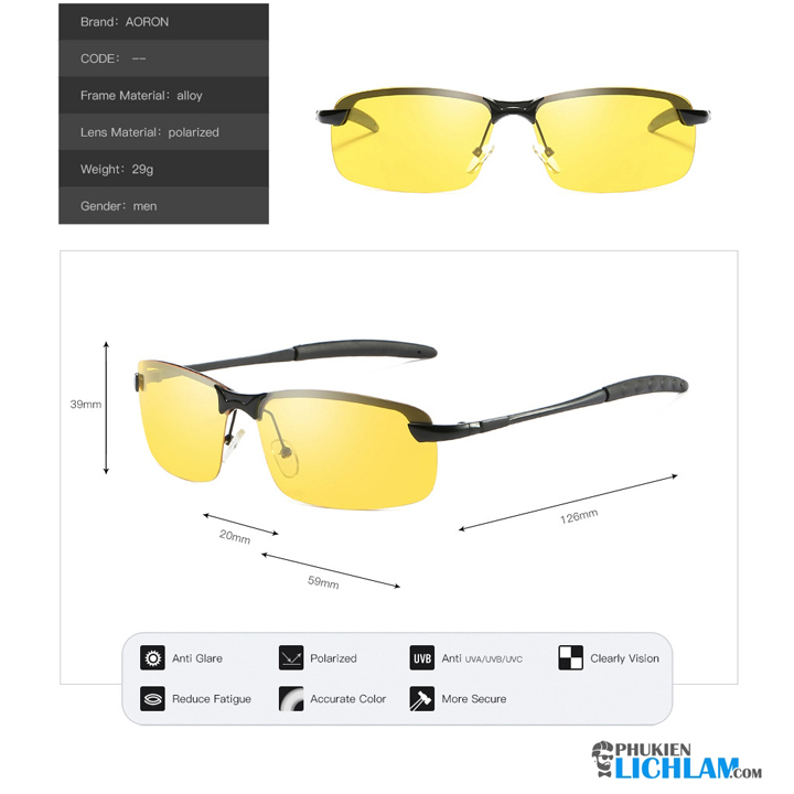 Tên sản phẩm: Kính đi đêm AORON chính hãng A3043
