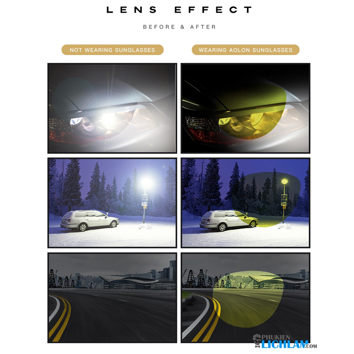 - Mắt kính giúp lái xe chắn được ánh nắng mặt trời nhưng vẫn nhìn rõ ràng, đặc biệt giúp nhìn rõ hơn vào ban đêm.