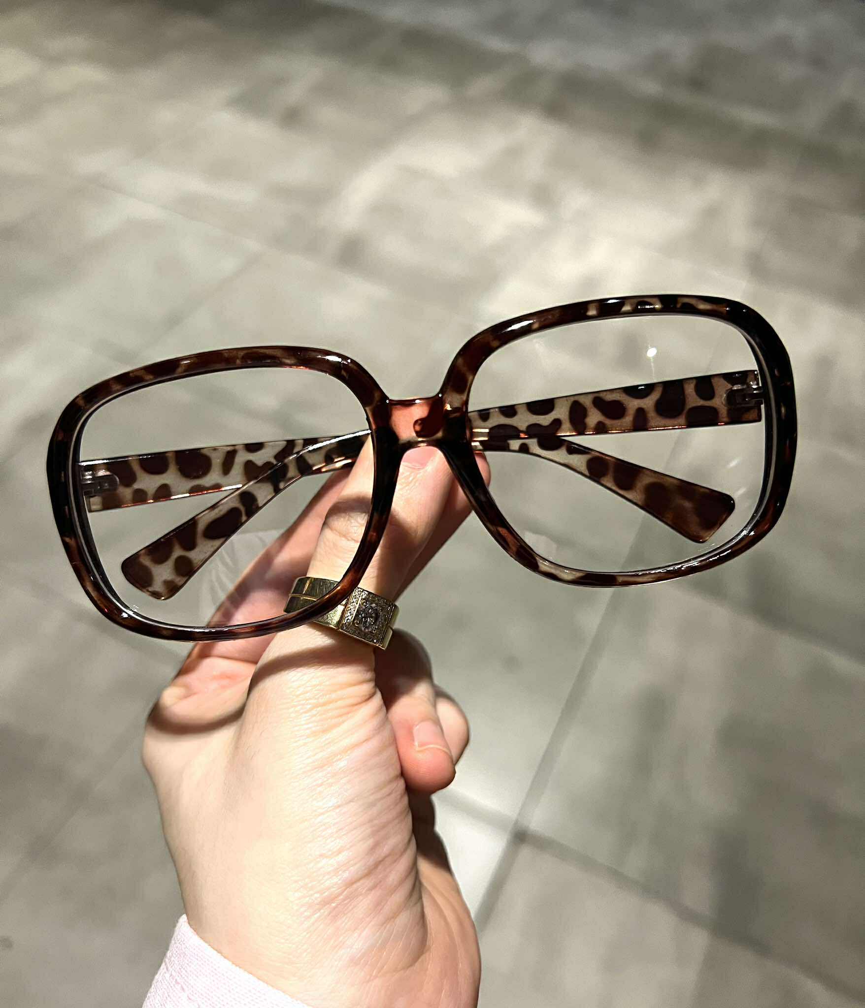 Kính mắt đi đường, Kính thời trang unisex nam nữ Mắt vuông dáng to màu đồi mồi