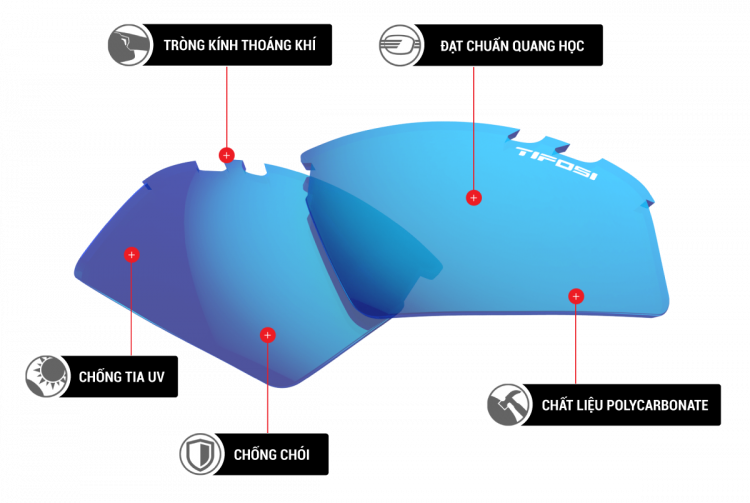 Tất cả tròng kính Tifosi 100% đều chống tia UVA và UVB độc hại.