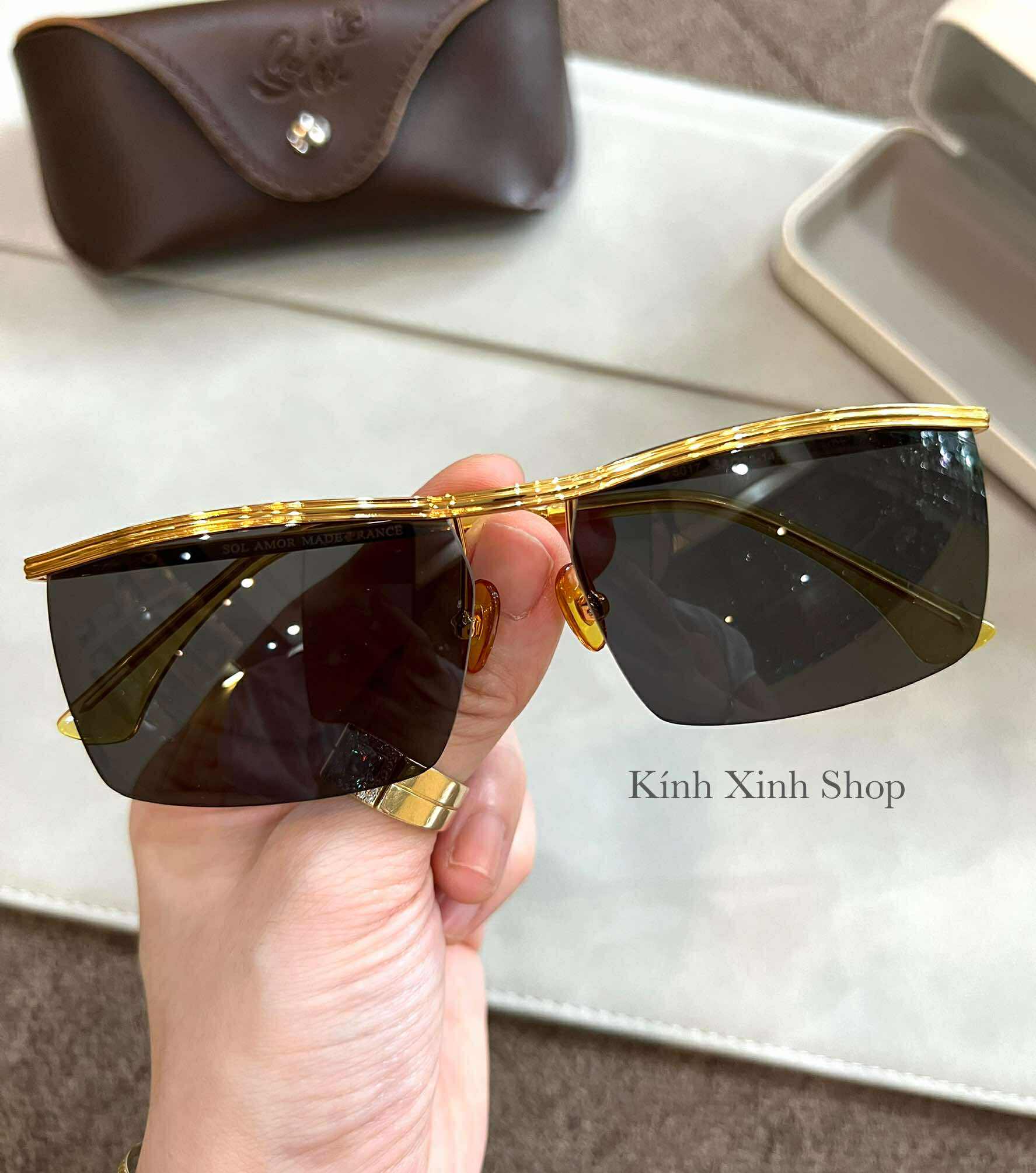 Kính râm nam Solex Amor nửa viền càng nhỏ cao cấp mạ vàng 14K Tặng Fullbox phụ kiện