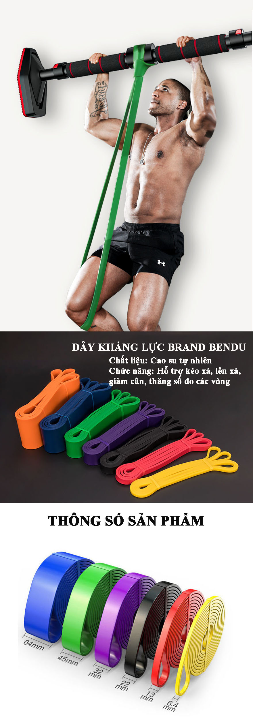 -Dây kháng lực Hỗ trợ lên xà đơn (pull up) hay xà kép (dip)