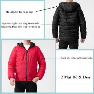 • Áo ấm nam, nữ áo khoác phao 2 mặt chống nước,chống rét có Size ,M,L,XL,XXL + size M:45 - 57Kg + size L: 58 - 67Kg + Size XL: 68 - 77Kg + Size XXL : 78 - 90kg ĐẶC ĐIỂM NỔI BẬT: Áo phao nam nữ - Áo 3 lớp nhẹ, mềm mịn và thoải mái - Mặc đi gió đi mưa đều phù hợp nhờ lớp ngoài cản gió, chống bám bụi, giặt nhanh khô lại không bám bẩn. -Thiếu kế khoá kéo chống nước + dây kéo ở mũ + dây rút ở gấu áo tiện lợi - Áo có 4 màu trẻ trung: Xám Đen, Than Đen, - Rêu Đen, Đỏ Đen là những tone màu cực dễ phối đồ.