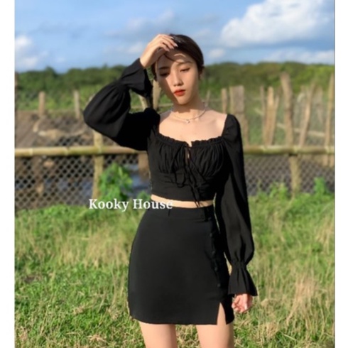 Giới thiệu KOOKY HOUSE - ÁO JUHI ĐEN - Áo Croptop tay dài thiết kế nhún ngực thời trang và cao cấp
