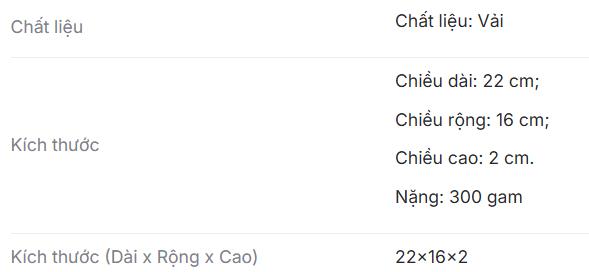 | Xuất xứ (Made in) | Việt Nam |