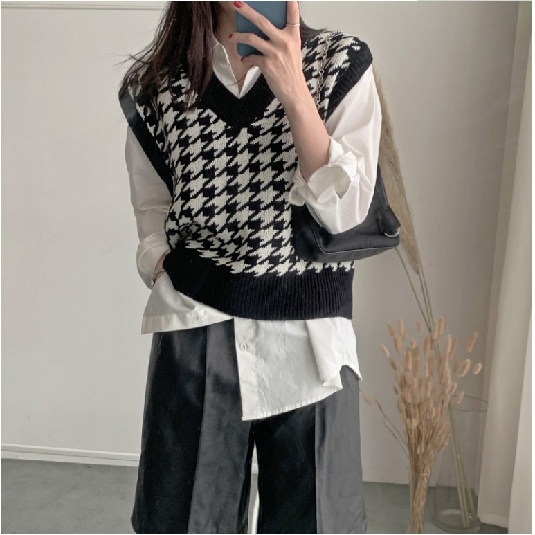Kumivn SẴN HÀNG SET áo len gile và áo sơ mi trắng kiểu ullzang Hàn Quốc (ảnh thật cuối)