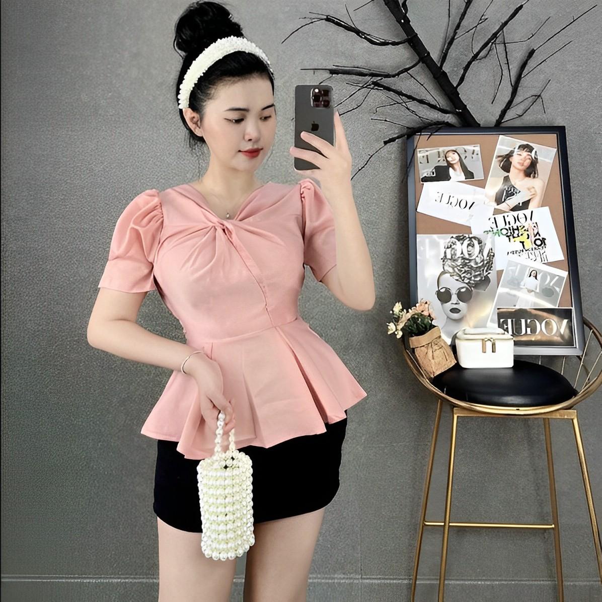 ️ Tên sản phẩm: Áo kiểu nữ peplum kate lụa công sở cổ xoắn ngực và chun lưng giấu bụng hiệu quả