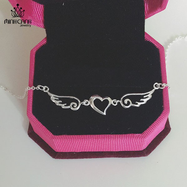 Mẫu lắc chân thiên thần trơn với điểm nhấn đôi cánh thiên thần ở hai bên trái tim tượng trưng cho tình yêu trong sáng luôn được lưu giữ bay xa cùng với những khoảnh khắc đẹp.