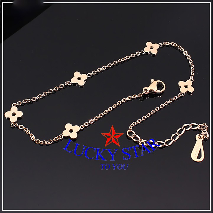 Giới thiệu Lắc chân hoa bốn cánh titan không đen mang lại may mắn