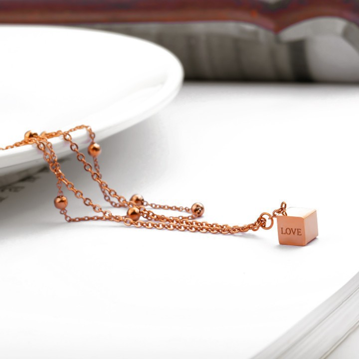 Phụ Kiện Thời Trang > Lắc chân || Lắc Chân Nữ 2 Tầng Khối Lập Phương Titan Không Đen TT 1231