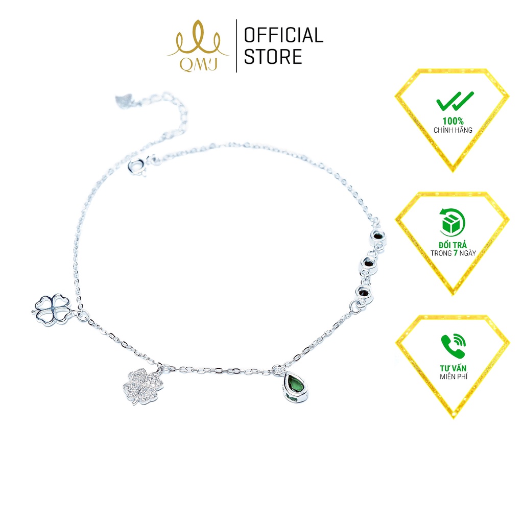 QMJ Lắc chân nữ Thanh Anh cỏ may mắn bạc Ý 925 phụ kiện đi biển, trang sức thời trang cho bạn gái - Q418