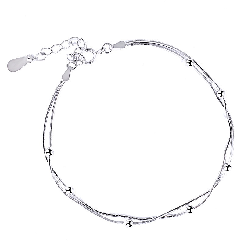 Lắc chân nữ bạc ý s925 thiết kế dây đôi hạt bi đơn giản chắc chắn LC2635 - Bảo ngọc jewelry