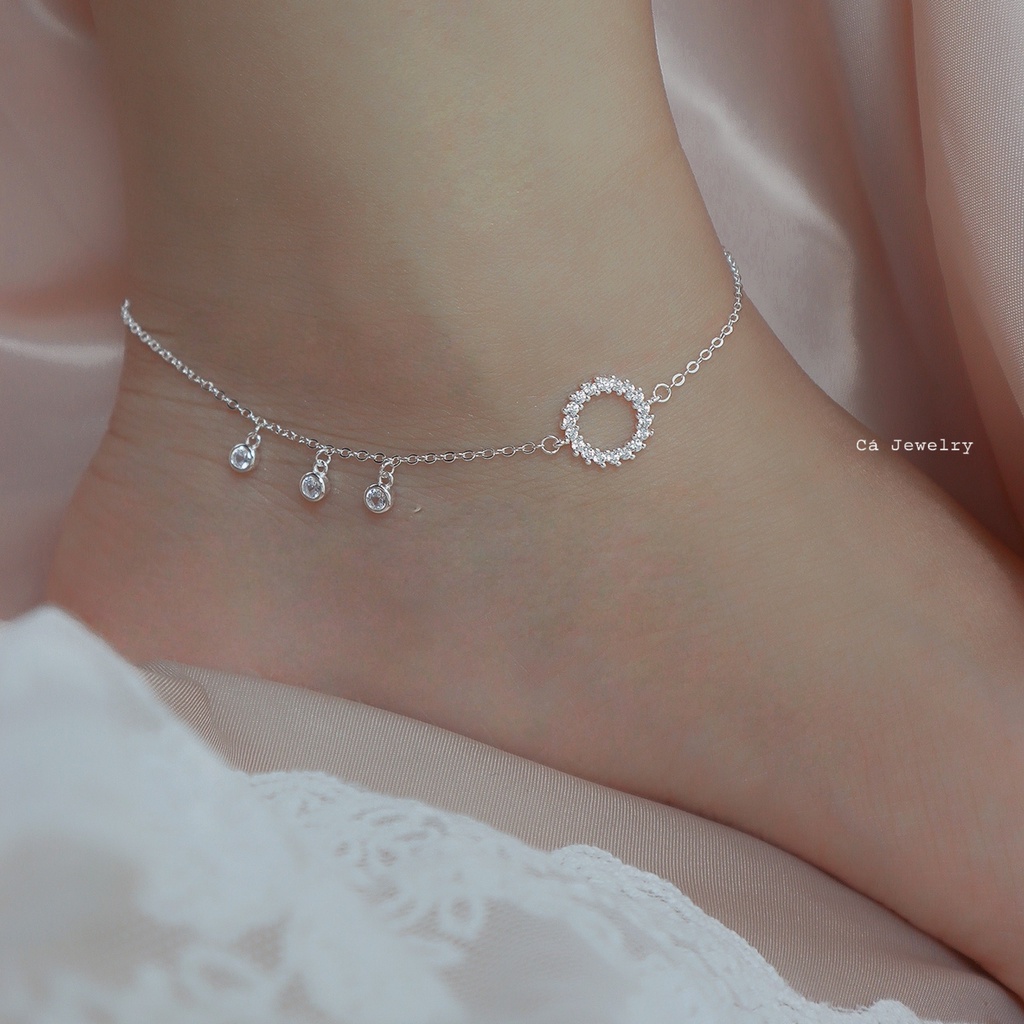Giới thiệu Lắc chân nữ vòng chân nữ bạc s925 mặt tròn đính đá và 3 viên pha lê tròn tua rua Cá jewelry LC34