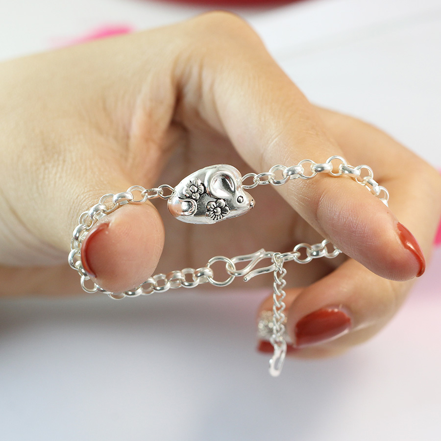 Lắc tay bạc cho bé được thiết kế cách điệu cực dễ thương với hình chú Chuột độc đáo