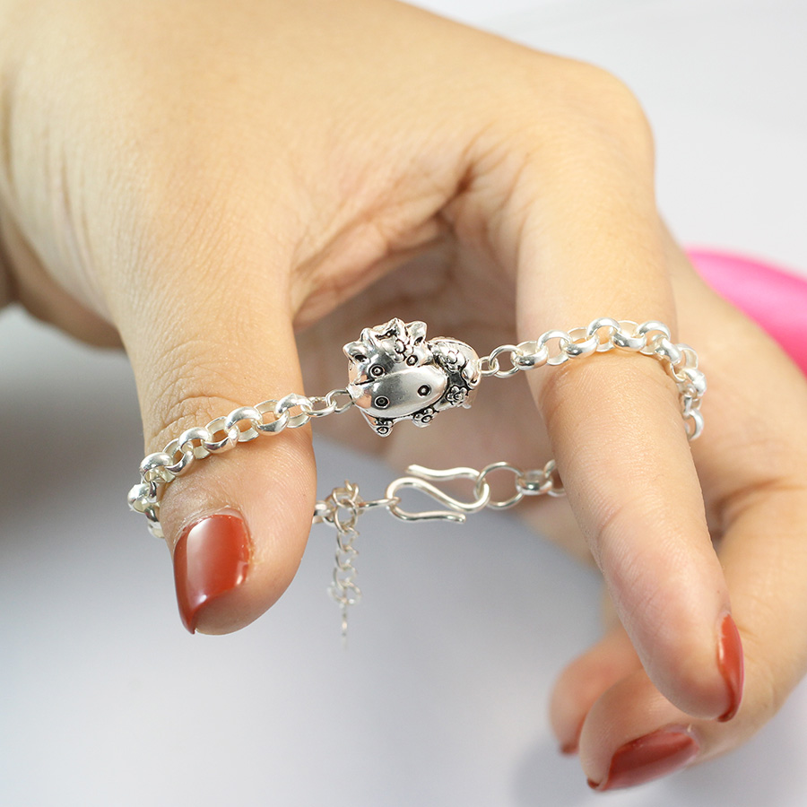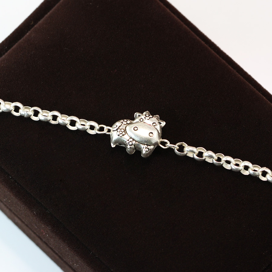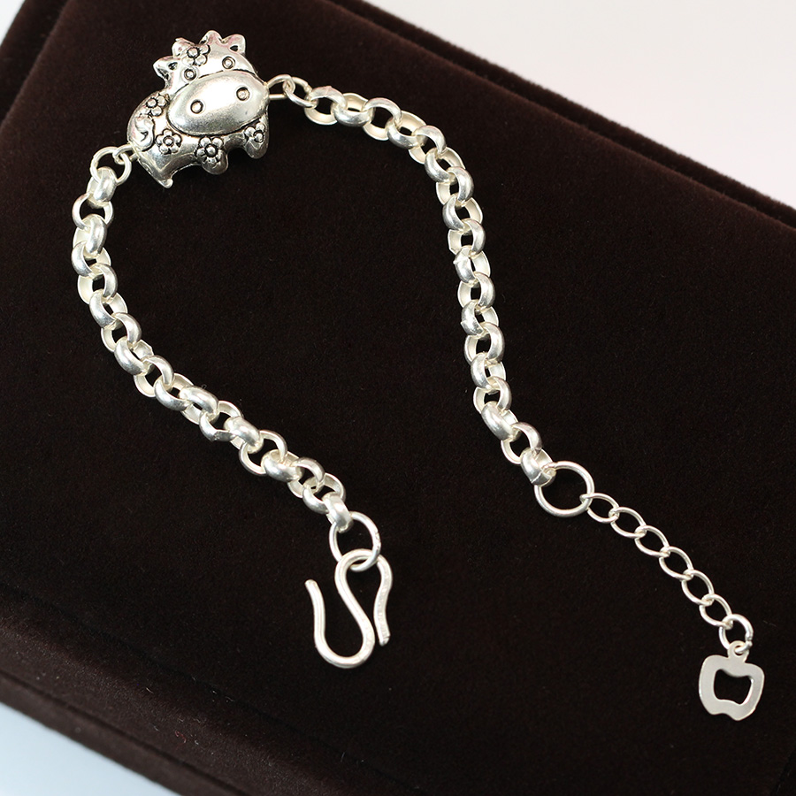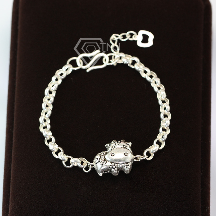 Hình ảnh chi tiết mẫu lắc tay trẻ,lắc tay bạc cho bé trai, bé gái, tuổi Sửu, tuổi con Trâu LTT0017