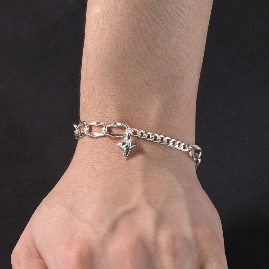 Lắc tay nam bạc thật mắt xích hoạ tiết ngôi sao cá tính LTA0021 - Trang Sức Trường An