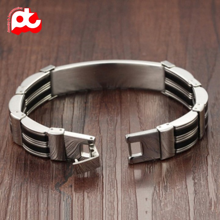 Giới thiệu Lắc tay nam inox thời trang kiểu bảng dẹp soyong màu trắng thép không gỉ PTLTNA90