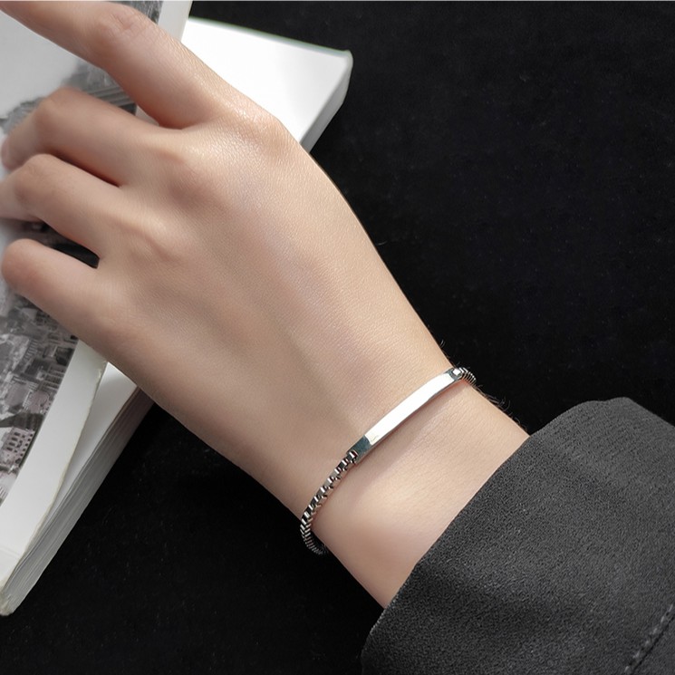 Giới thiệu Lắc tay vòng tay nam nữ unisex bạc s925 thanh cong dây hộp khắc tên theo yêu cầu LTB15