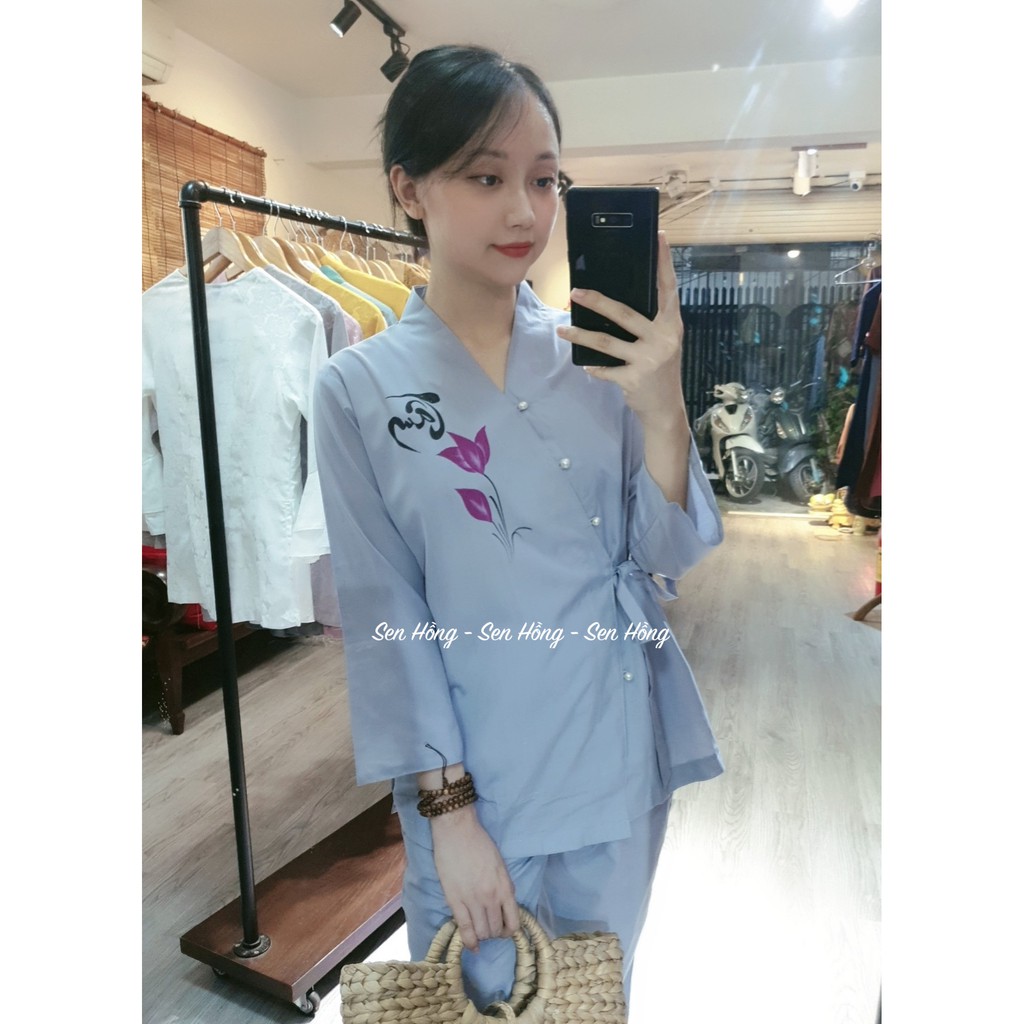 Giới thiệu ❣️Bộ đồ lam đi chùa - Mẫu chéo nhật vẽ thư pháp màu lam nhẹ nhàng không kén da