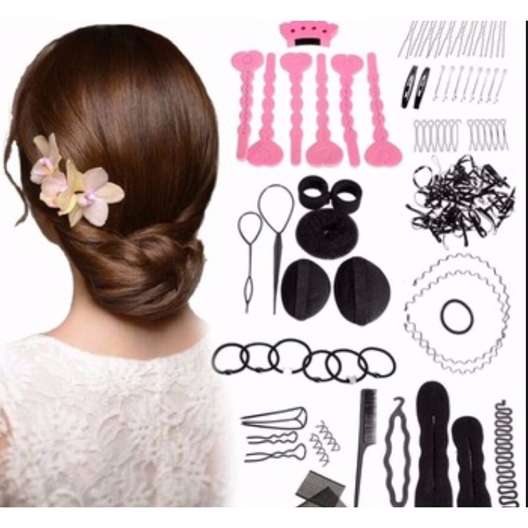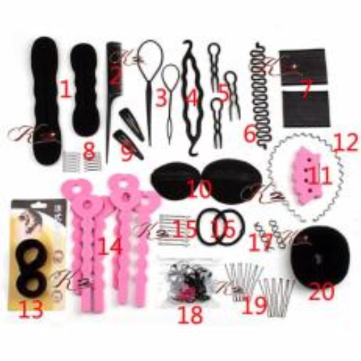 Bộ làm tóc đa năng này tạo các kiểu tóc uốn, tóc búi, tóc phồng phù hợp với trang phục khi đi làm, đi chơi, dự tiệc hoặc dạo phố cùng bạn bè, cho bạn uốn quăn theo bất cứ chiều nào để tạo ra những kiểu tóc đẹp.Với bộ dụng cụ làm tóc bạn có thể sáng tạo vô số kiểu tóc xinh xắn, sang trọng, thích hợp cho các buổi đi chơi hay dạ tiệc. - Gọn nhẹ, dễ sử dụng, tiện lợi và hữu ích trong việc tạo kiểu tóc. - Kiểu dáng gọn nhẹ, dễ sử dụng, dễ dàng tạo được một búi tóc củ tỏi dễ thương đi học, đi làm, tập thể dục, thể thao hay mái tóc búi kiêu sa nổi bật khi đi dự tiệc. - Bộ sản phẩm có 02 đệm phồng tóc giúp bạn sáng tạo được nhiều kiểu tóc phồng mái mà không cần phải ra tiệm, với mút phồng tóc sẽ giúp tóc bạn trông nhiều và dày hơn đặc biệt nhất là rất thích hợp cho người tóc ít. - Với Bộ dụng cụ tạo kiểu tóc nghệ thuật, chỉ vài thao tác đơn giản bạn sẽ tự thiết kế cho mình một kiểu tóc vừa dễ thương nhưng cũng đầy cá tính. - Sản phẩm được làm bằng chất liệu cao cấp nên bạn yên tâm sủ dụng mà không sợ làm hư hay chịu bất kỳ tổn thương nào cho tóc. - Với bộ sản phẩm này giúp cho bạn thay đổi kiểu tóc hằng ngày mà không sợ nhàm chán. Thỏa sức sáng tạo kiểu tóc cho bất kỳ khuôn mặt hay phong cách nào. - Chất liệu: nhựa, bông xốp rất an toàn đối với tóc, không gây hư tổn cho tóc như các dụng cụ uốn tóc dùng nhiệt thông thường.