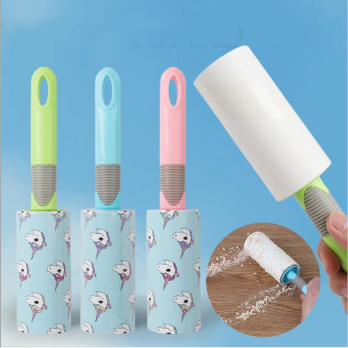 Dụng cụ cây lăn bụi, Cây lăn lông thú cưng trên quần áo làm sạch các sợi tơ vải dính trên quần áo còn sót lại sau khi giặt, hoặc bụi, lông vật nuôi bám trên quần áo khi bận. Dùng loại keo cao cấp, thân thiện với người không gây độc hại, dính chặt và loại bỏ bụi, tơ bám, nhưng không gây dính keo vào bề mặt khi lăn.