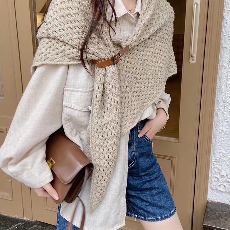 Phụ Kiện Thời Trang > Khăn choàng || Lăn Len Vintage Cao Cấp Khuy Da