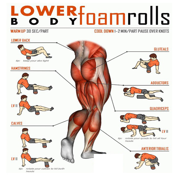 + Mỗi vùng cơ thể nên được tập luyện với con lăn trong khoảng 30-40 giây và thực hiện tối thiểu từ 10-15 vòng lăn.