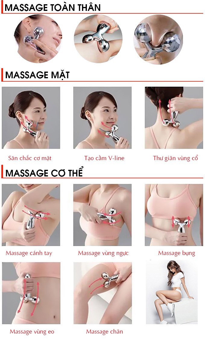 Cây Lăn Massage Mặt Và Body 3D Massager XC-206 Giúp Thon Gọn Nâng Cơ Mặt