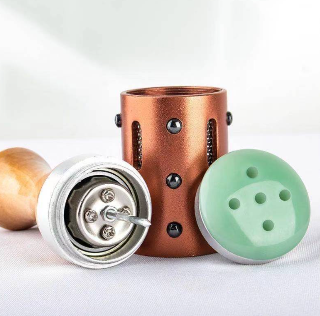 Giới thiệu THANH LĂN NGẢI CỨU NGỌC BÍCHBộ sản phẩm khi nhận hàng sẽ bao gồm:- Thanh lăn bằng đồng, nắp bằng đá cẩm thạch tự nhiên,- Gói ngải cứu cao cấp,- Miếng đá cẩm thạch Massage tự nhiên hình trái tim.1. Cấu tạo- Thanh lăn bằng đồng nguyên chất, đầu đá cẩm thạch tự nhiên.- Ngải cứu nguyên chất 5 năm tuổi ép khô.2. Công dụng- Trên mặt:Giúp nâng cơ, xóa nhăn, tăng cường tuần hoàn máu, lưu thông khí huyết, trẻ hóa da.- Trên BODY:Giảm đau nhức xương khớp, cổ vai gáy, chải thông kinh lạc, tăng cường tuần hoàn máu, lưu thông khí huyế3. Cách dùng- Cắm viên ngải cứu vào bên trong thanh lăn rồi đốt lên.- Xoáy các ren lại rồi massgge trên vùng cần làm đẹp.