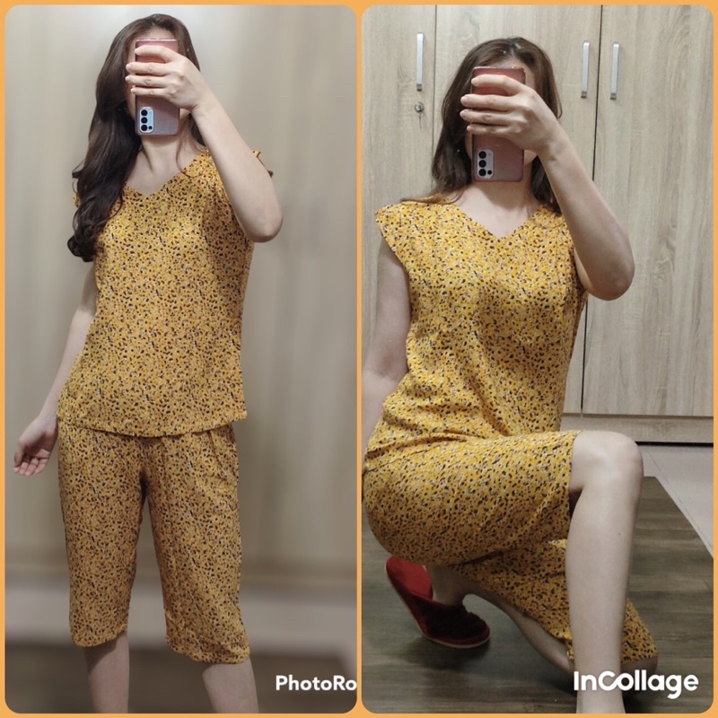 Giới thiệu Bộ lanh nữ mặc nhà chất vải VT quần ngố áo tay hến cổ tim ( ảnh tự chụp)