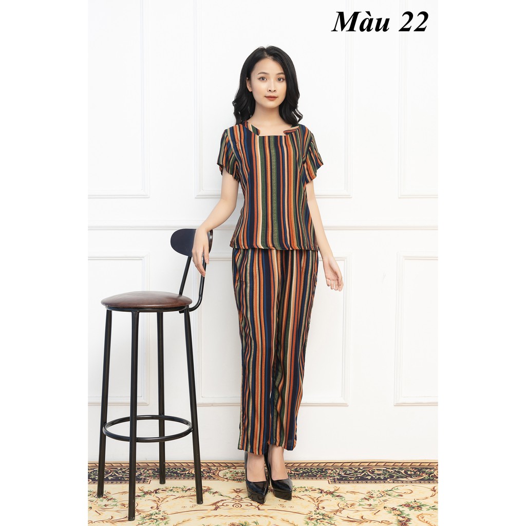 Bộ mặc nhà lanh Vicci trung niên, áo cộc tay phối quần dài in họa tiết được may từ chất liệu vải lanh nhung nhẹ, bề mặt vải mềm mịn, phù hợp mặc trong mùa xuân hè. Sản phẩm với thiết kế đơn giản cùng họa tiết nổi bật mang lại nét gọn gàng, duyên dáng cho phái đẹp. • Chất liệu: Vải lanh, tole nhung • Áo suông, tay ngắn • Quần dài lưng thun • Xuất xứ: Việt Nam Size: M, L, XL,XXL, XXXL (từ 45-75kg).Tùy theo chiều cao/cân nặng mà KH có thể tiến/lùi một size.