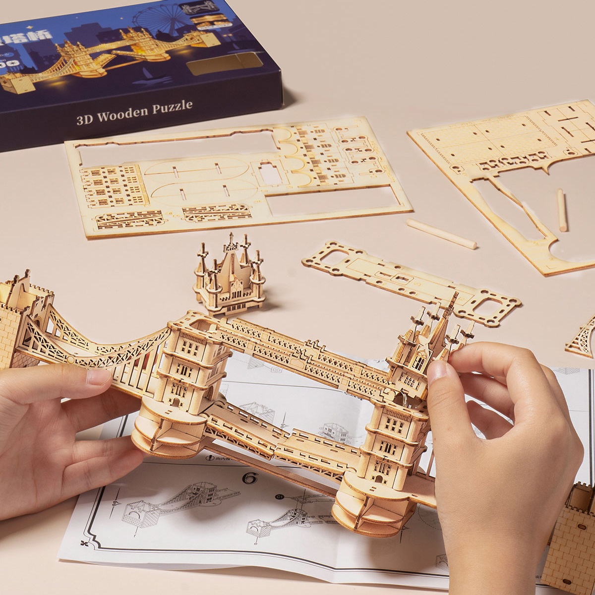 Mô hình Cầu Tháp Luân Đôn Tower Bridge TG412 mô phỏng lại Cầu Tháp Luân Đôn nổi tiếng bằng gỗ tự lắp ráp. Nó là món Đồ chơi xếp hình bằng gỗ 3D tuyệt vời cho cả người lớn và trẻ em. Đây là món quà Đồ chơi giáo dục tốt nhất và quà tặng ngày lễ (chẳng hạn như Giáng sinh, Sinh nhật) cho trẻ em cũng như là món Đồ trang trí nhà cửa đáng yêu.
